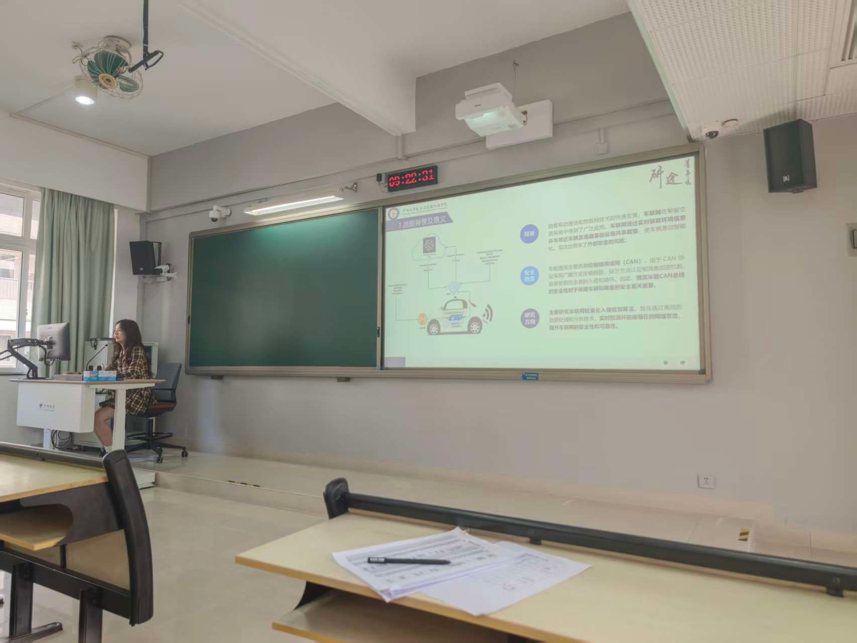 彭德林同学的汇报分三个部分展开:第一部分简要介绍的研究背景包括:车联网的概念、数据不平衡的概念以及研究车联网轻量化入侵检测算法的重要性。第二部分介绍了针对不均衡数据的解决方法,并详细阐述了设计的轻量化模型。通过对通道分层处理并整合通道注意力机制,有效地为输入特征图的各个通道分配权重。从而使网络在处理不均衡数据时能够更好地平衡各类特征,减少多数类对少数类的影响。第三部分分析了实验结果,将HSnet模型与其他传统的轻量化模型的F1值、AUC值、参数大小以及计算复杂度进行对比,通过实验验证所提出的算法模型HSnet在F1值、AUC值以及参数大小上优于其他算法。最后,在实验中,将分别对HSNet学生模型应用不同的蒸馏方法,包括KD、MTD、CRD等,分析蒸馏方法对HSNet性能提升效果,并总结其在不同数据集上的表现。目标是在保留模型精度的同时,减少模型的复杂性和计算资源消耗。