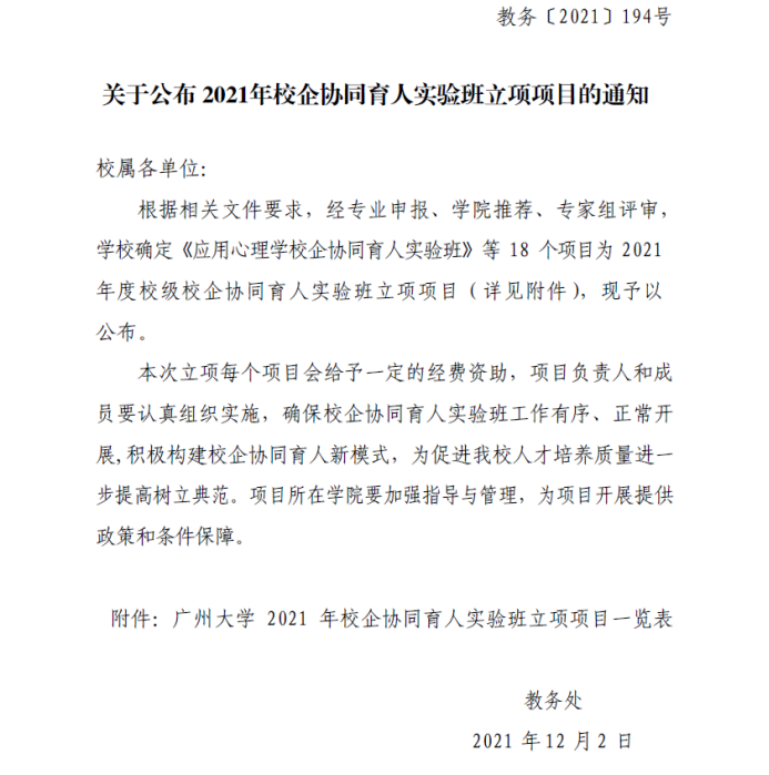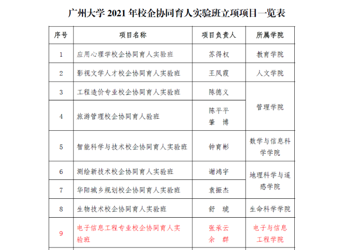 12月2日,学校教务处公布了2021年校企协同育人实验班立项项目的通知。我校18个项目获得立项,其中由我院张承云老师、余群老师负责的电子信息工程专业校企协同育人实验班获立项,详见下文。